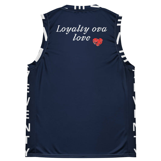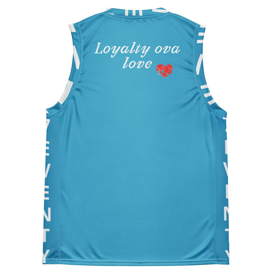 The Loyalty Ova Love unisex basketball jersey combines style and performance for players of any gender. Crafted with quality materials, it offers comfort and durability on the court. Show your allegiance with its sleek design, perfect for showcasing your loyalty and love for the game.